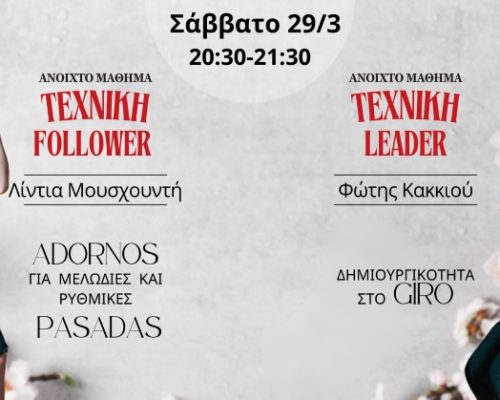 Σάββατο 3/5 – Σεμινάριο Τεχνικής για Follower & Leader