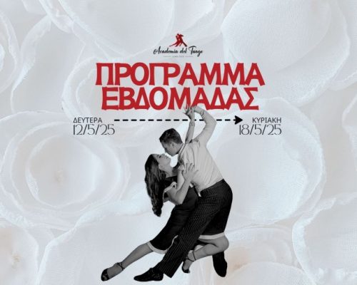 Μετά από το εκρηκτικό tango long weekend, επιστρέφουμε στις σταθερές μας: ρυθμός, αγκαλιές και καλά vibes! 🎶 📅 Η agenda μας για την εβδομάδα 12 – 18/5: Τρίτη 13/5, 21:30 – 22:30 Tango Vals με Lucas Gauto & Ναΐμα Γερασοπούλου Στροβίλισμα, σύνδεση και κομψότητα: το Vals δεν είναι απλώς βηματάκια, είναι ροή. Και με Lucas & Ναΐμα γίνεται… τέχνη. Πέμπτη... >>