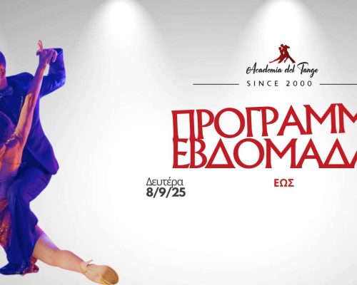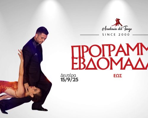 ✨ Ο Σεπτέμβρης συνεχίζεται με μαθήματα, πρακτική και μια δυνατή milonga στην Academia del Tango! 📅 Η agenda μας για 22–28/9: 🟦 Τρίτη 23/9 | 21:30–22:30Πρώτο μάθημα Tango Vals με Lucas Gauto & Ναΐμα ΓερασοπούλουΣτροβιλισμοί, ροή και μουσική — έναρξη της νέας σεζόν Vals με το κορυφαίο δίδυμο! 🟣 Πέμπτη 25/9 | 22:00–00:00Practica Night 🌙Εδώ χαλαρώνεις, δοκιμάζεις και βρίσκεις τον... >>