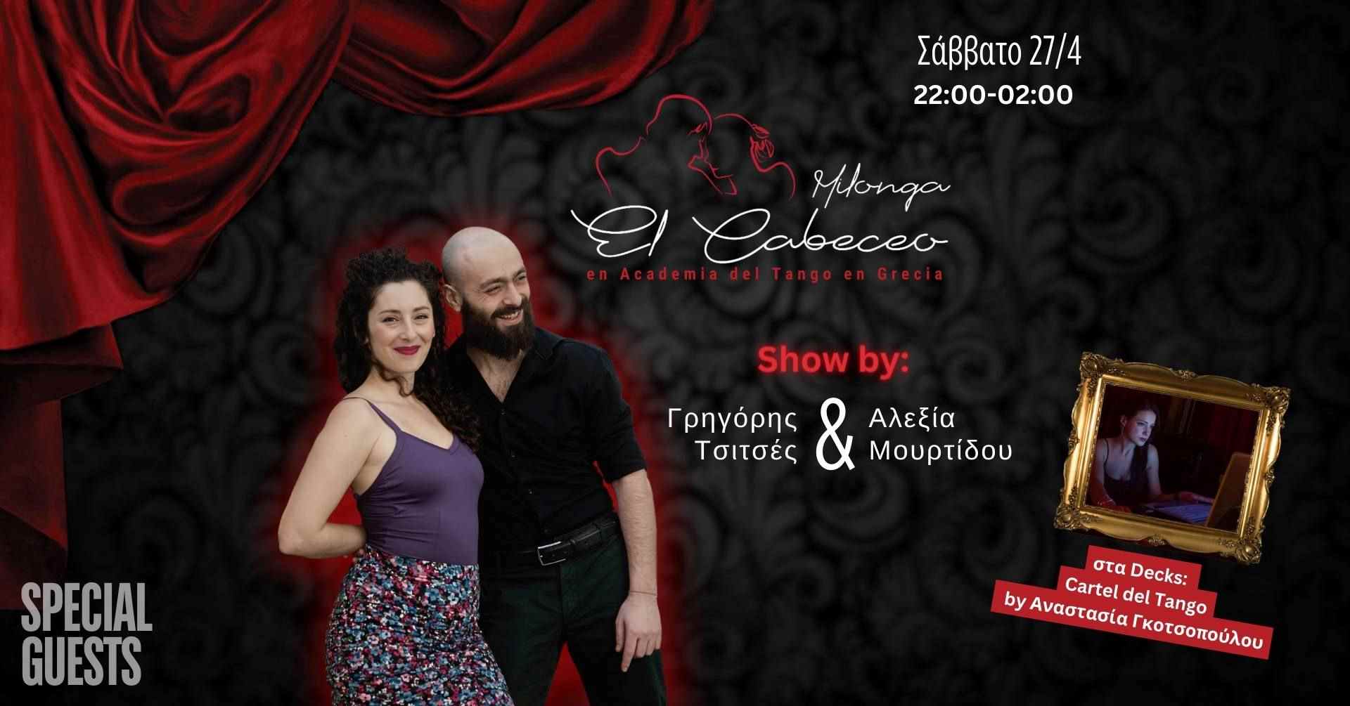 Δύο υπέροχοι χορευτές και άνθρωποι και αγαπημένοι μας φίλοι από την Θεσσαλονίκη, ο Γρηγόρης Τσιτές και η Αλεξία Μουρτίδου, έχουν ετοιμάσει ένα μοναδικό show για την Milonga “El Cabeceo” αυτού του Σαββάτου!!