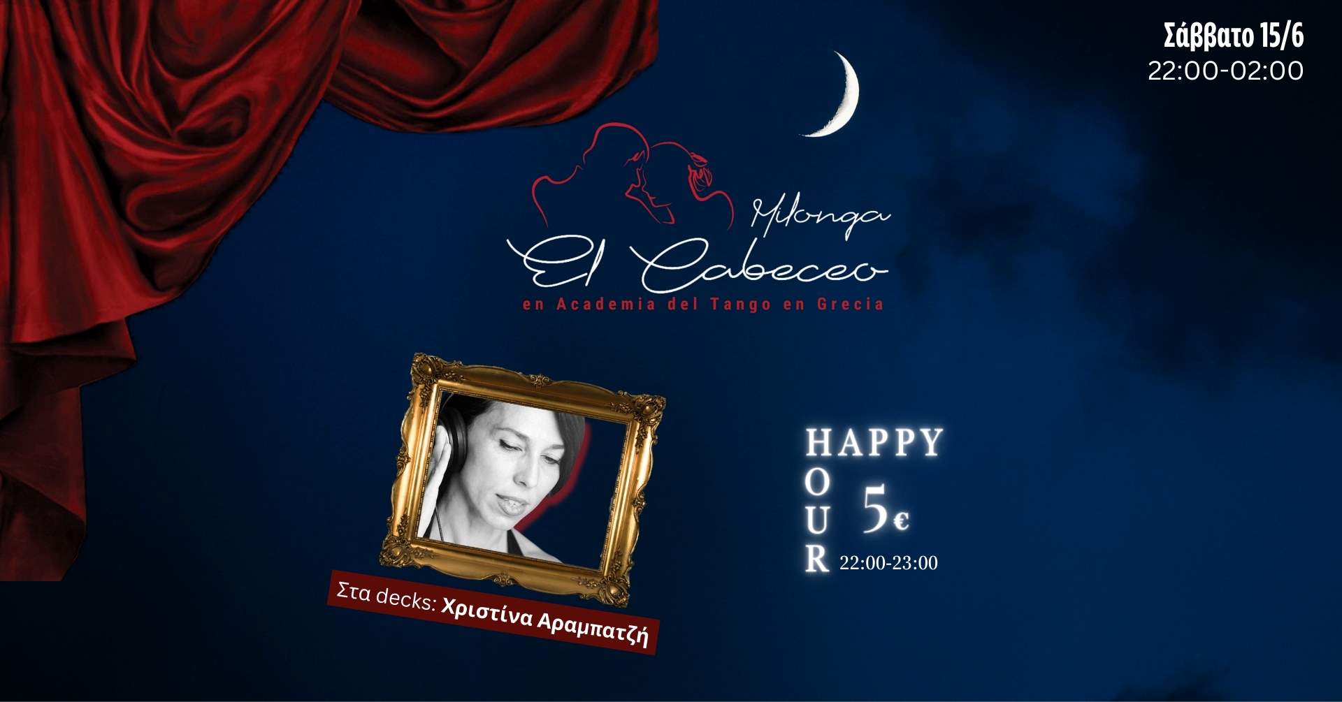 Μία ακόμη μαγική βραδιά μας περιμένει αυτό το Σάββατο στη milonga “El Cabeceo”!!! Η υπέροχη Χριστίνα Αραμπατζή θα είναι στα decks και θα γεμίσει τον χώρο με τις μοναδικές tandas της!!!
