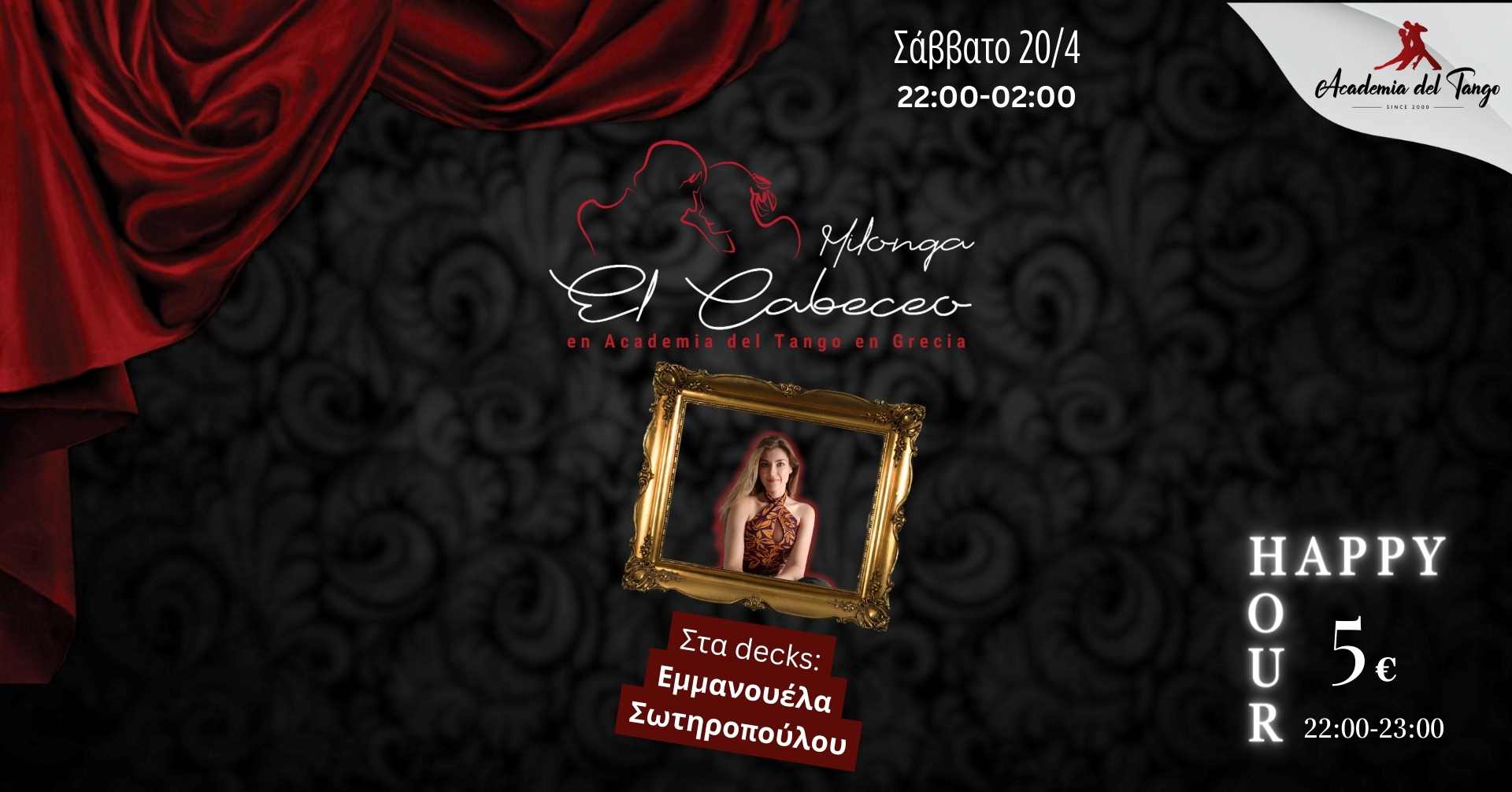 Η Milonga “El Cabeceo” γεμίζει αγκαλιές, χαμόγελα και αγάπη τα Σάββατά μας!! 🎧 Η εξαιρετική Εμμανουέλα Σωτηροπούλου θα μας γεμίσει και με μοναδικές tandas για χορό μέχρι το πρωί!!