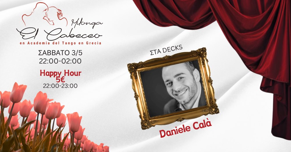 Αυτό το Σάββατο η Milonga “El Cabeceo” θα γεμίσει, για ακόμη μία φορά, με τις πιο γλυκές αγκαλιές και ο αγαπημένος μας φίλος Daniele Calà με τις πιο όμορφες μουσικές μελωδίες, την πίστα της Academia!!