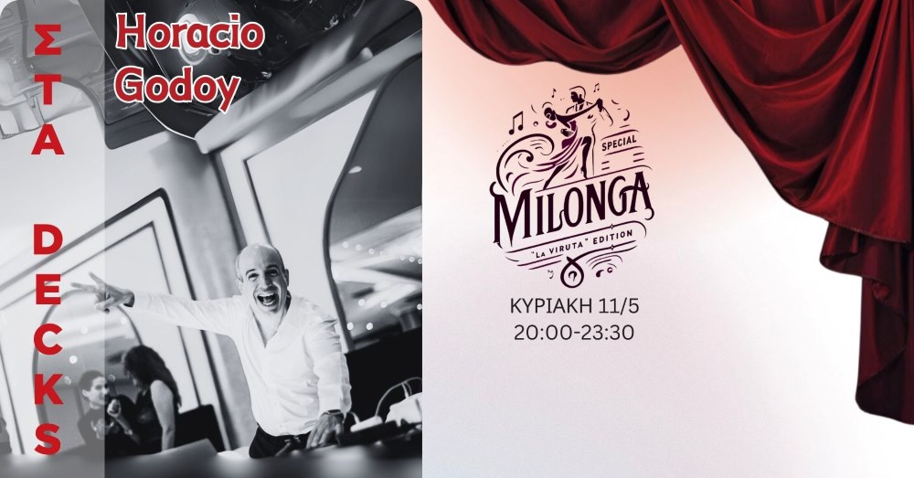 Για μία ακόμη χρονιά, η πιο δημοφιλής Milonga του Buenos Aires, προσγειώνεται στο κέντρο της Αθήνας!!! Ο μοναδικός Horacio Godoy με ένα dj set (mini show), μας μυεί και μας μεταδίσει το vibe της αυθεντικης, αργεντίνικης milonga!!!