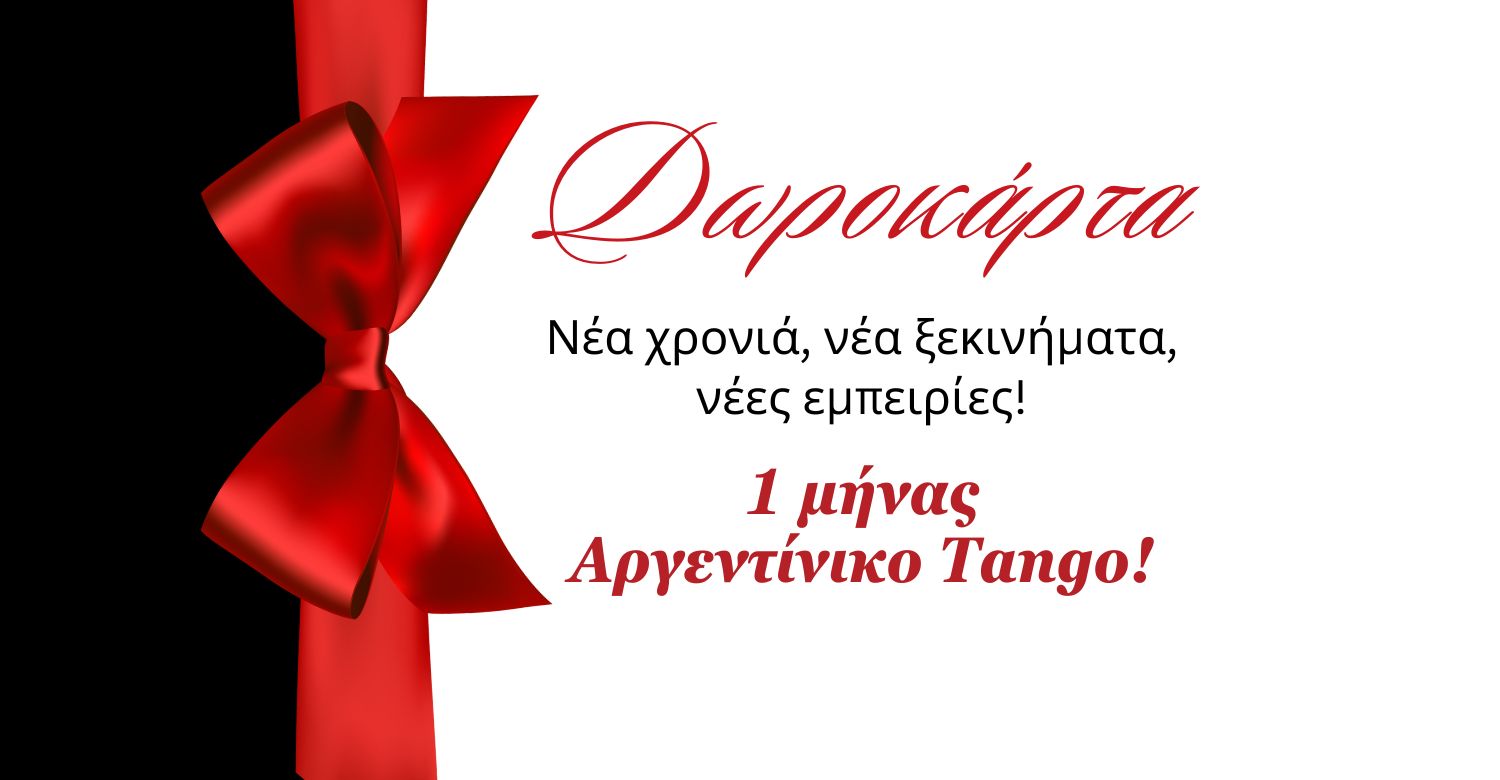 Κάντε δώρο στους αγαπημένους σας ή στον εαυτό σας τη Δωροκάρτα μας, με ένα μήνα στα νέα τμήματα Αργεντίνικου Tango!🎁💝