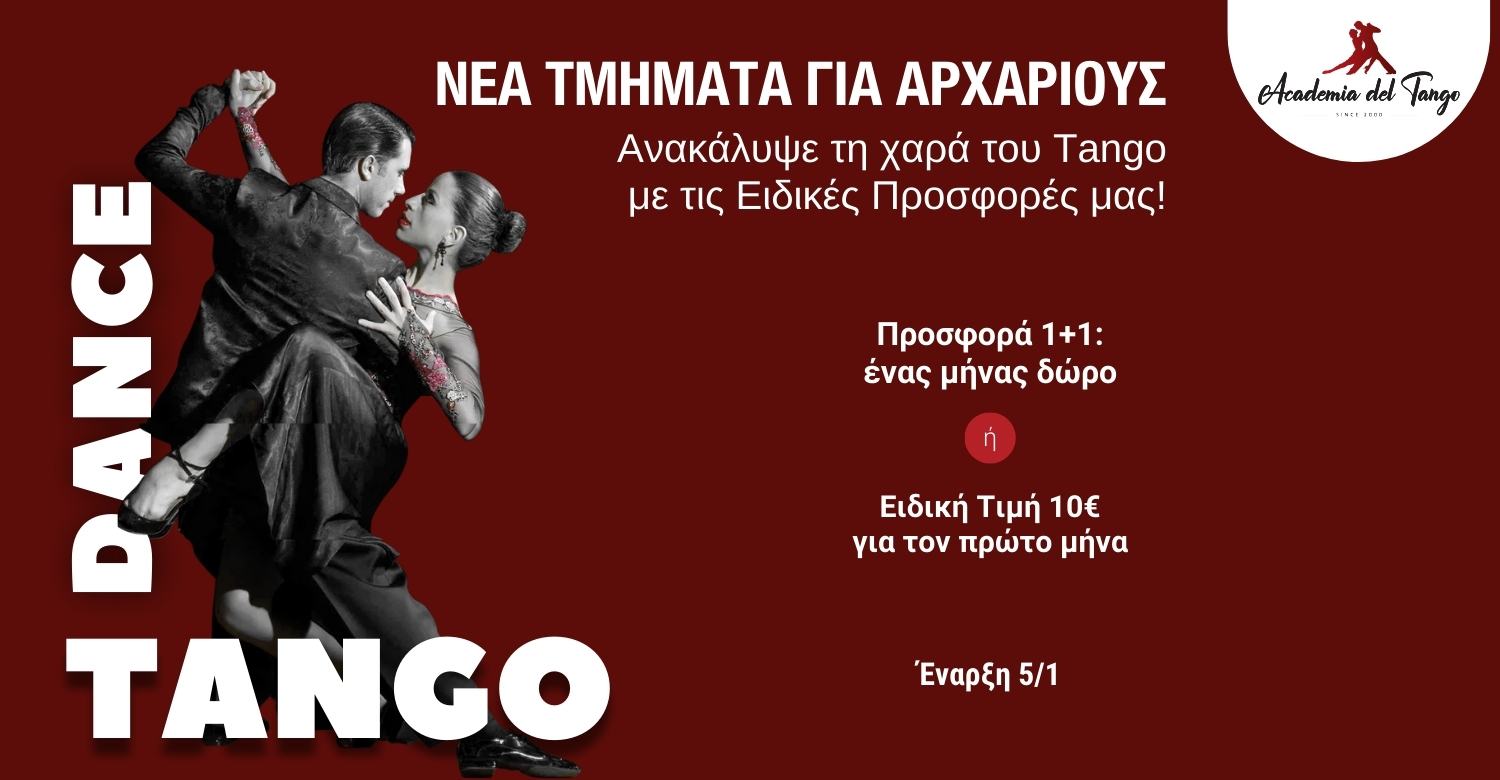 Τα νέα τμήματα ξεκινούν 5/1 🗓️ και σας προσφέρουν την ευκαιρία να ανακαλύψετε τη μαγεία του Tango 💃🕺 και να γνωρίσετε νέους φίλους 🤝!