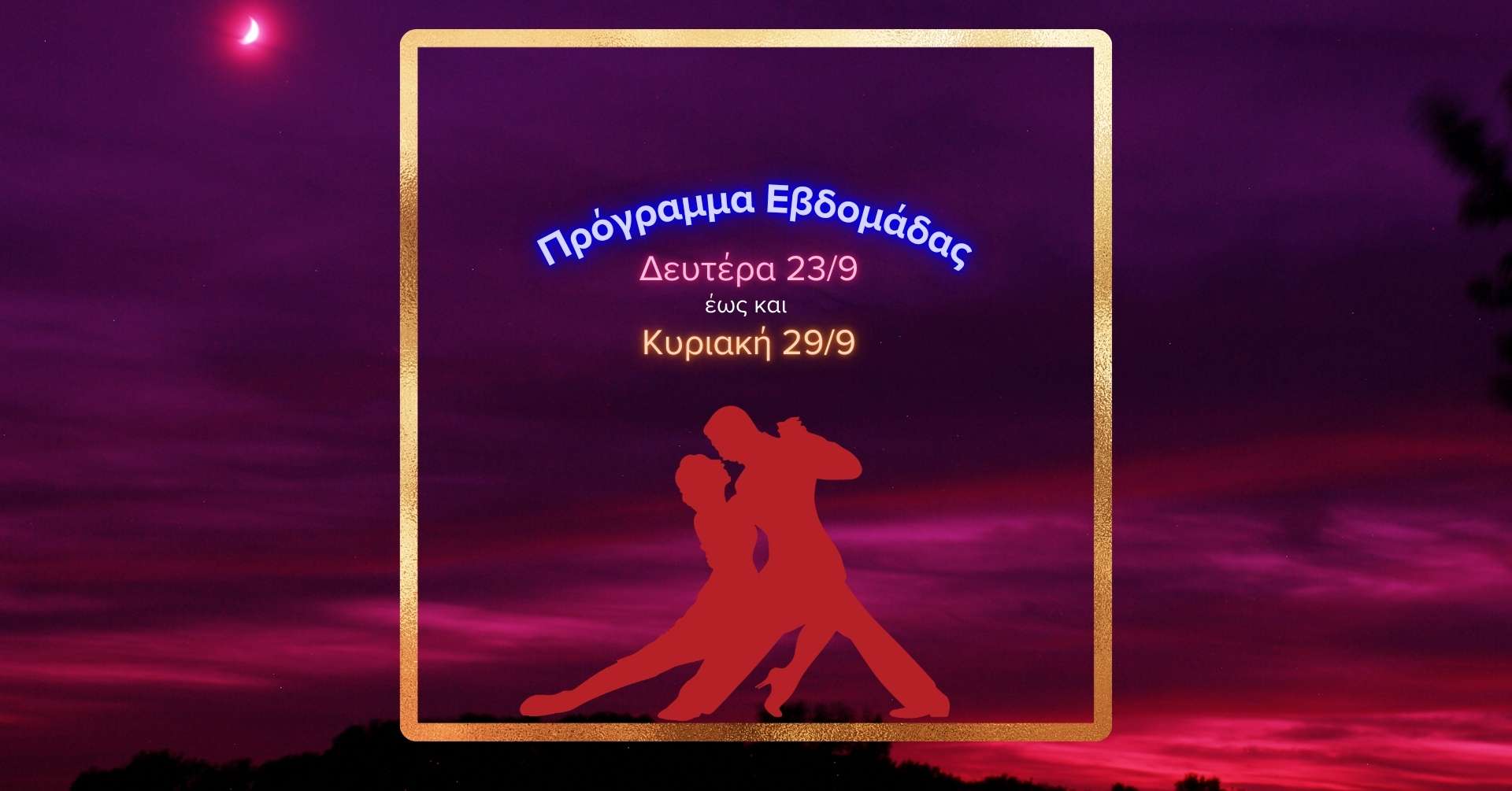 🌟 Τρίτη 24/9: Tango Vals! Στροβιλιστείτε με τους καλύτερους: Κάθε Τρίτη, ανοιχτό μάθημα Tango Vals με τους πρωταθλητές της καρδιάς μας Lucas Gauto & Ναΐμα Γερασοπούλου.