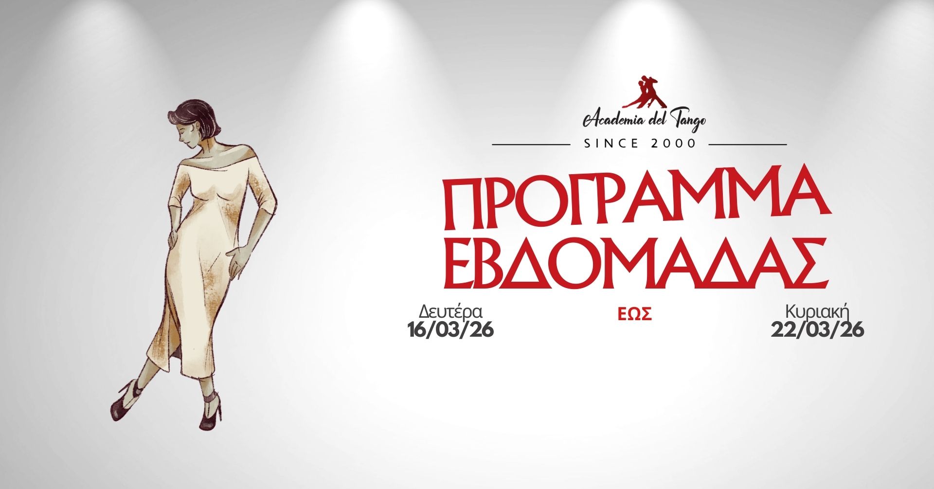 🟡 Παρασκευή 20/3 | 19:00–20:00 Τεχνική Καβαλιέρου & Ντάμας με Λίντια Μουσχουντή & Φώτη Κακκιού Θέμα:All about boleos Έλεγχος, ακρίβεια και δυναμική γύρω από μια από τις πιο εντυπωσιακές κινήσεις του tango. Τιμή: Μέλη 5€ | Μη μέλη 10€