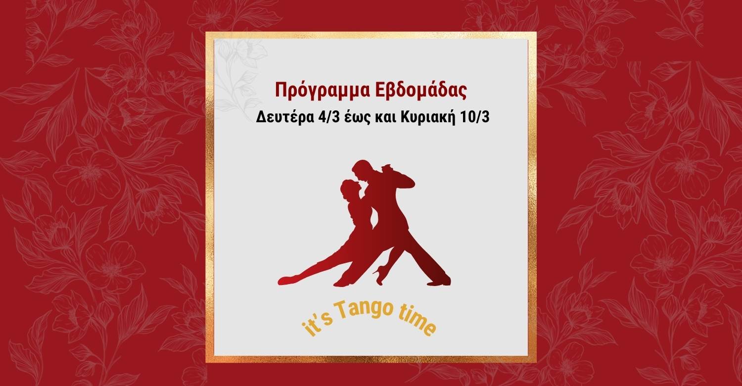 🌟 Τρίτη 5/3, 21:30-22:30: Ανοιχτό Μάθημα Tango Vals: Βυθιστείτε στον κόσμο του Vals και αφεθείτε στη μελωδία με τους Lucas Gauto & Ναΐμα Γερασοπούλου.