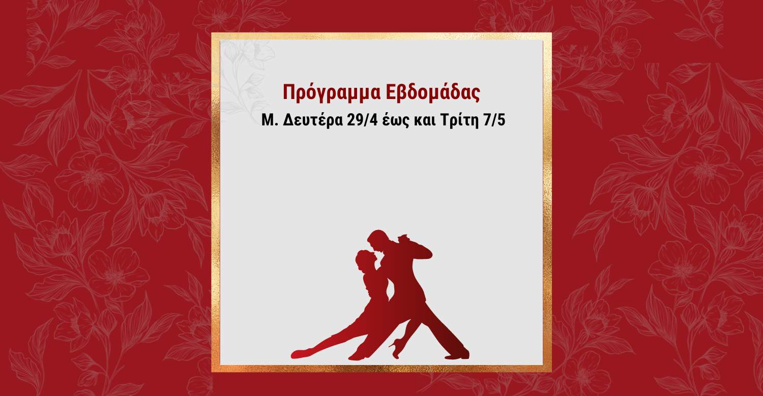🌟 Μ. Τρίτη 30/4, 21:30 – 22:30: Αποχαιρετάμε τον Απρίλιο με Tango στους ρυθμούς του Vals! Όπως κάθε Τρίτη μαζί μας οι Lucas Gauto & Ναΐμα Γερασοπούλου.