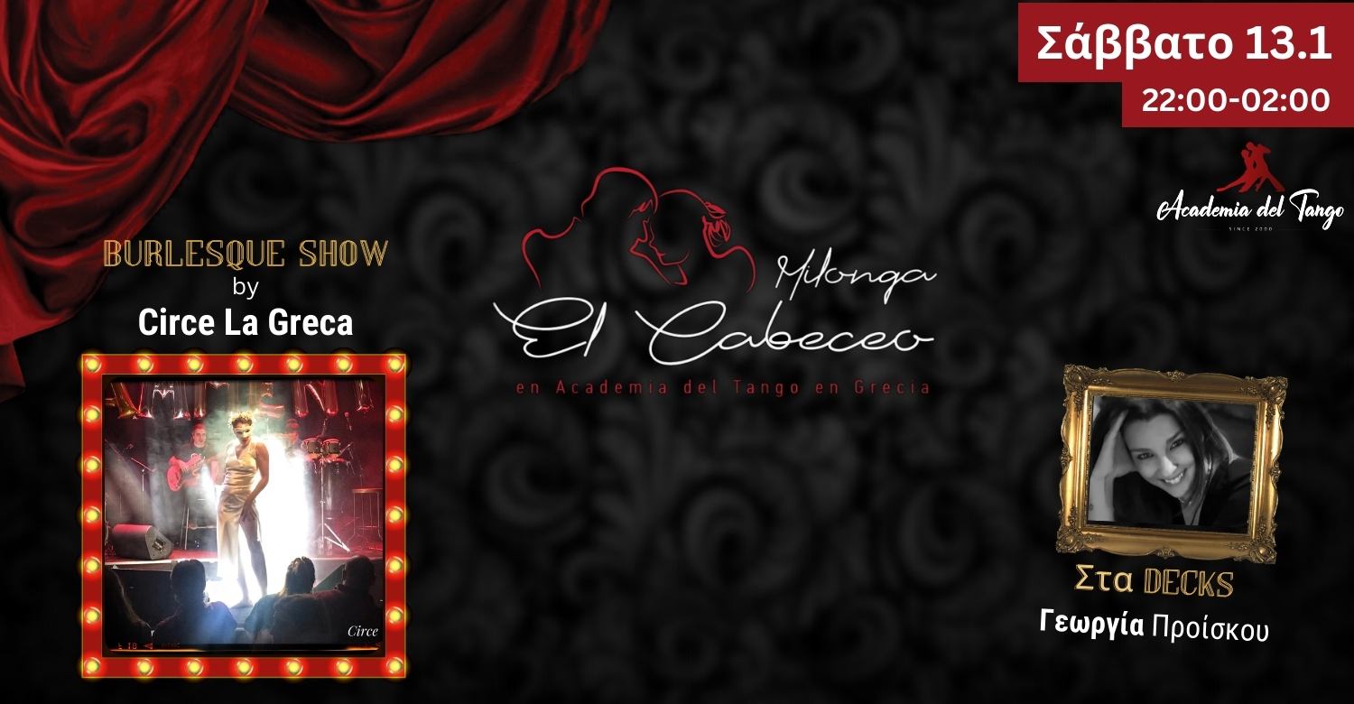 Σάββατο 13/1 /Milonga “EL CABECEO”/Burlesque Show by Circe La Greca/ Κοπή Βασιλόπιτας/🎧Γεωργία Προίσκου!