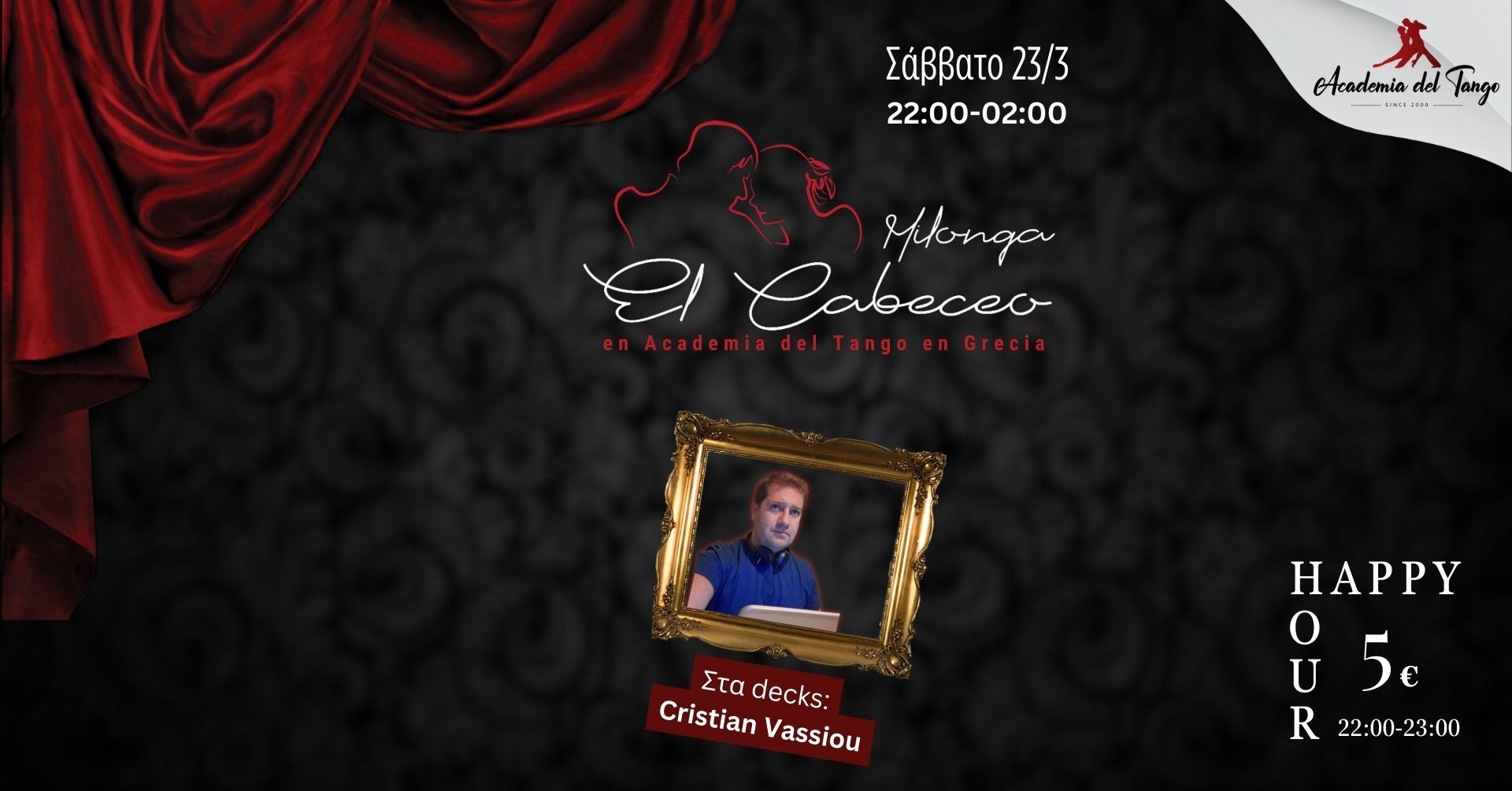 Ένα ακόμη Σάββατο βράδυ το ραντεβού δίνεται στην Milonga “El Cabeceo”!!! Ο Cristian Vassiou και οι μουσικές του επιλογές υποσχεται για μια βραδιά αξεπέραστη!!!