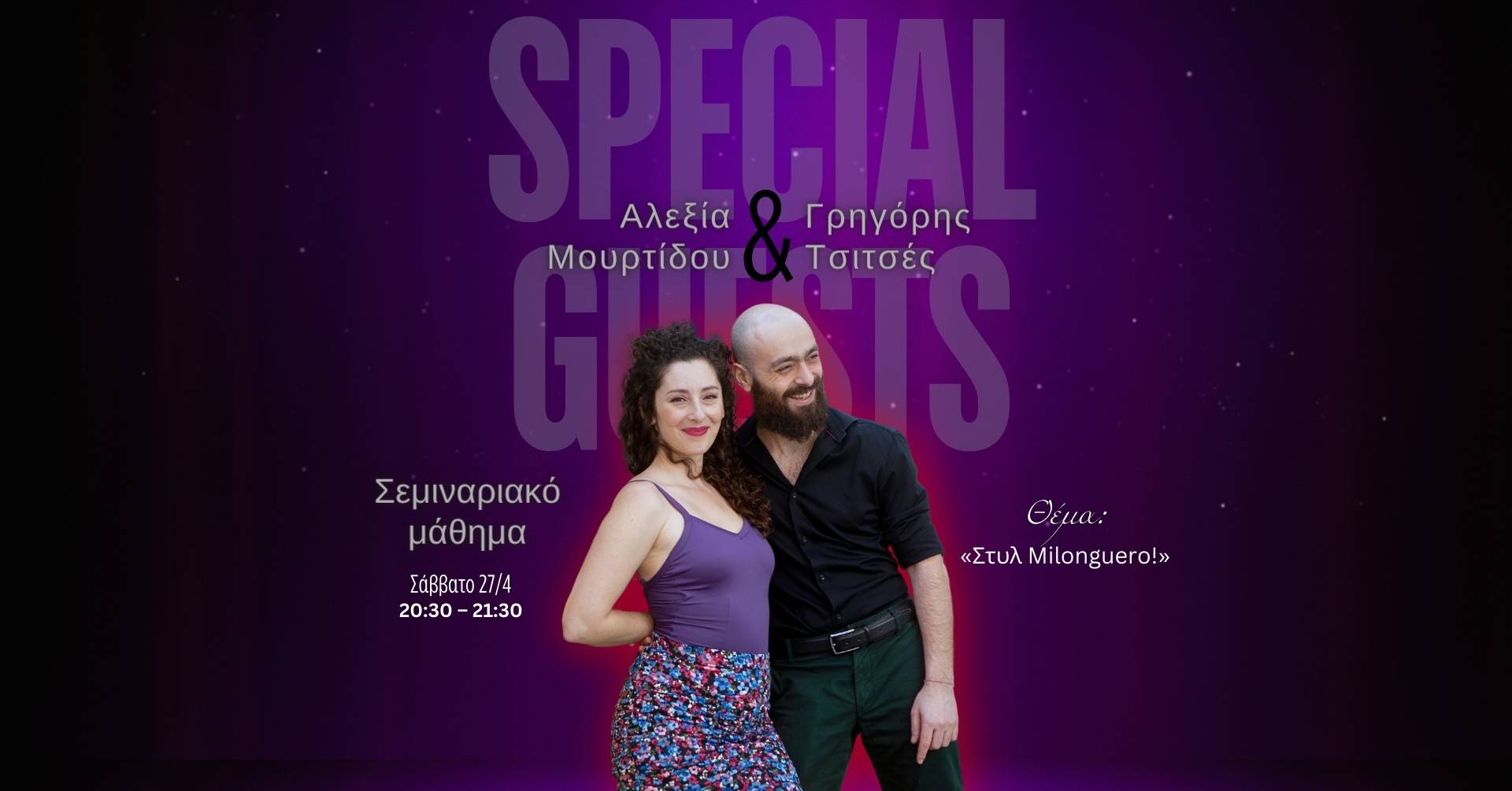 Ο Γρηγόρης και η Αλεξία αναλαμβάνουν το ανοιχτό σεμιναριακό μάθημα του Σαββάτου και θα μας αποκαλύψουν μυστικά σχετικά με το πως να χορεύουμε σε στυλ Milonguero!