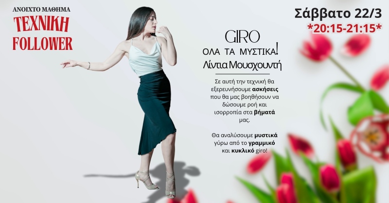 “Σε αυτή την τεχνική θα εξερευνήσουμε ασκήσεις που θα μας βοηθήσουν να δώσουμε ροή και ισορροπία στα βήματα μας. Θα αναλύσουμε μυστικά γύρω από το γραμμικό και κυκλικό giro!”